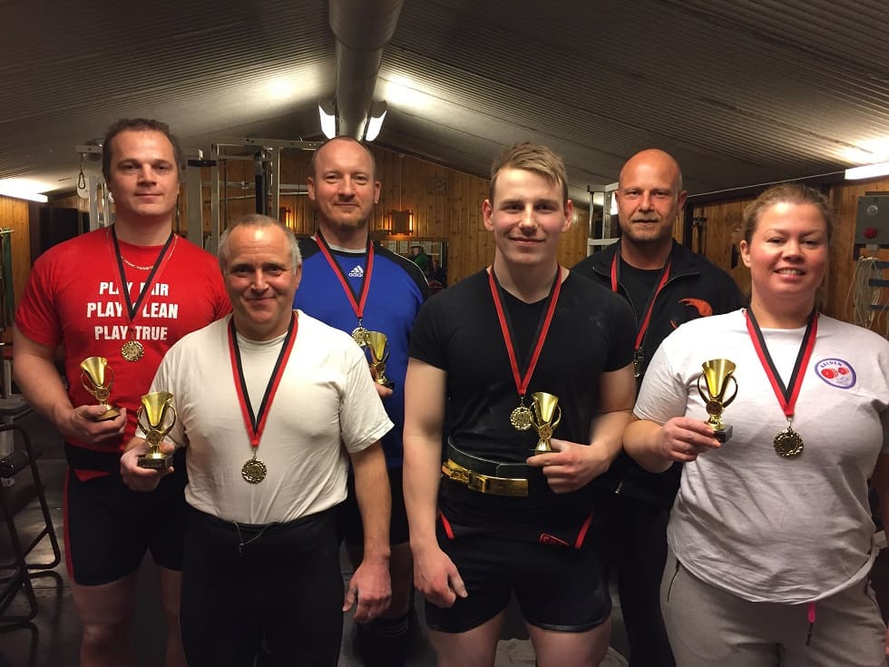 Thomas Puzicha var nestor på laget fra Halden. Han har løftet aktivt i 20 år og deltok nå i 105 kg yngre veteraner. Det ble bronsemedalje med serien195-157,5-210=562,5 kg.